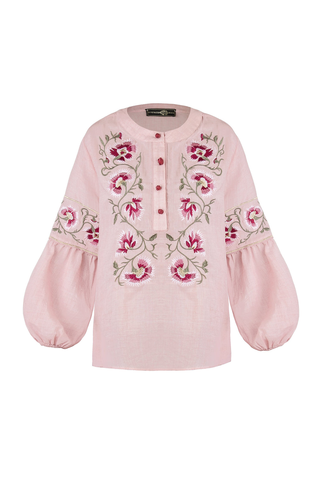 The Lola blouse is a must have new addition to our lightweight voile loose fitted blouses.Embroidered with silk and gold thread, inspired from antique Persian Ghalamkar motifs ,and embellished with handmade silk knot buttons, this blouse is a masterpiece of artisanal craftsmanship .The Lola blouse can best paired with our Lola pants ,shorts ,or midi skirt for a more cohesive look.